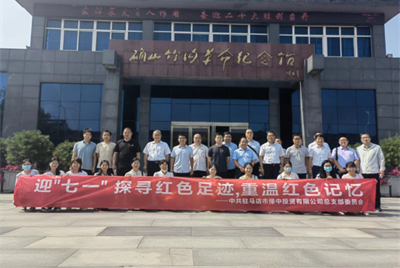 為慶祝中國共產黨成立101周年,激勵廣大黨員發揮先鋒模范作用,切實增強全體黨員干部的責任感和使命感,以黨的政治建設為統領,以實際行動和工作實效推動黨的政治建設落到實處,傳承紅色基因,重溫紅色記憶,7月1日上午,豫中公司黨總支組織全體黨員和入黨積極分子到駐馬店…